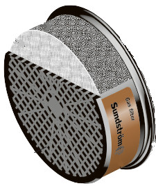 Gasfiltren kan enkelt kombineras med partikelfilter SR 510 P3 R, for att erhalla skydd aven mot aerosoler